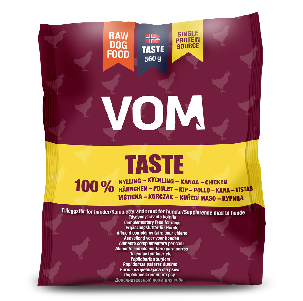 TASTE kip maakt al jaren deel uit van het assortiment en is een populair product. Kip is één van de grondstoffen die wij gebruiken en die het meest geschikt is als compleet voer, omdat kippeneiwit van zeer hoge kwaliteit is en een zeer goed aminozuurprofiel heeft. 100% kip is bovendien een geurloos en delicaat product. De 100% kip is verkrijgbaar in 6KG en 500gr.