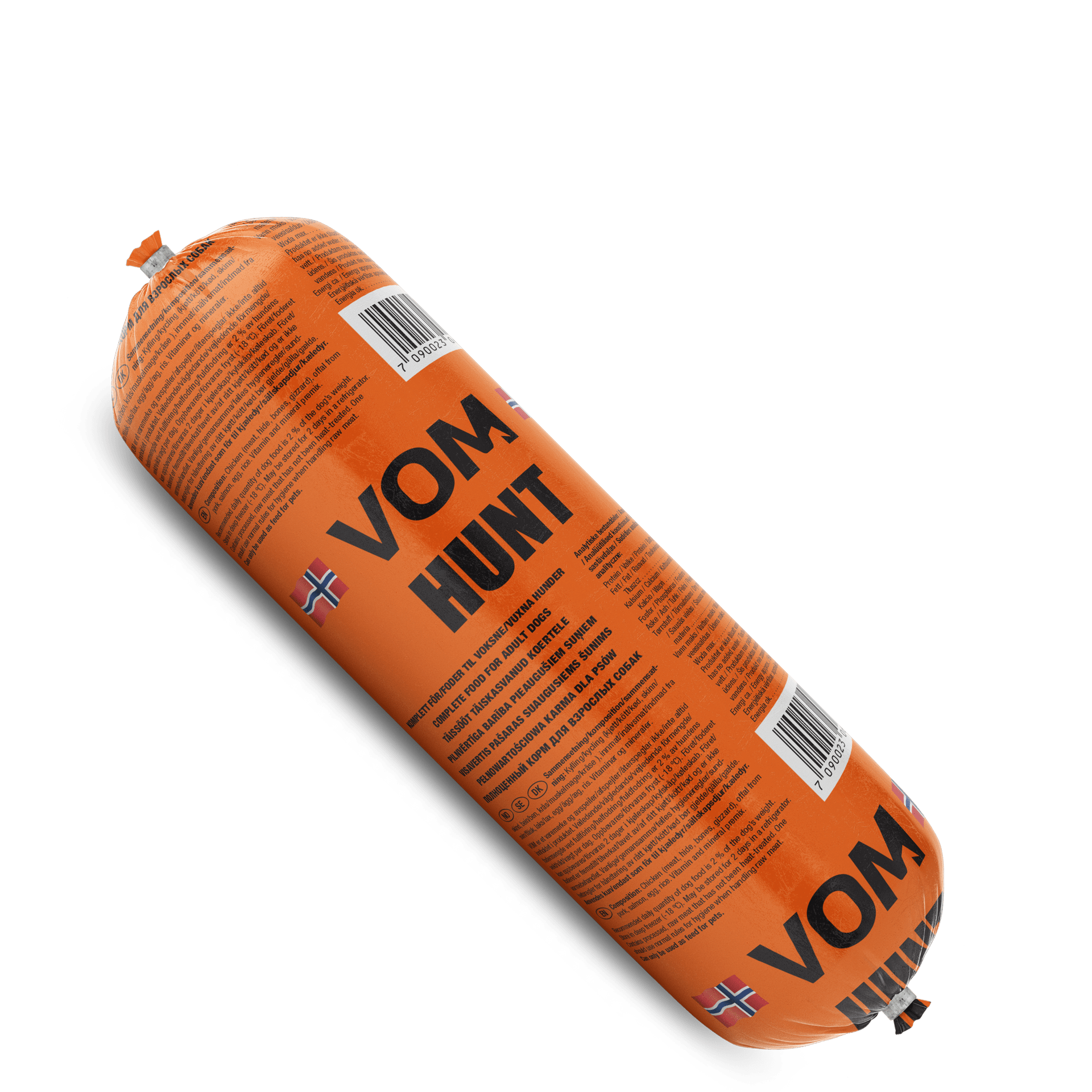 VOM Hunt is een volledig diervoer. Het product is speciaal aangepast aan het leven van een jachthond – voor, tijdens en na de jacht. De mix bestaat uit eend (vlees, huid, botten, spiermaag), varkensorgaan (lever, nieren), zalm, eieren, kippemagen en rijst. Hunt kan zowel als volledig voer als aanvullend voer worden gebruikt. HUNT is rijk aan gemakkelijk opneembaar vet dat zorgt voor een langdurige energievoorziening. Daarnaast bevat het product een klein aandeel koolhydraten uit rijst, die helpen om de maag te stabiliseren tijdens stressvolle periodes en de capaciteit tijdens intensieve training te verhogen.
